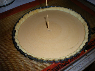 To partially bake the crust, preheat the oven to 400°. Butter one side of a sheet of aluminum foil and place that down on the crust. Fill the foil with dried beans or rice or pie weights. Put the pie plate on a baking sheet and bake for 25 minutes. Carefully remove the foil and weights, and if the crust has puffed, press it down gently with the back of a spoon. Return the pie plate to the oven and bake for 8 minutes more, or until the crust is very lightly colored. (I skipped the 8 minutes when making the tart.) Cool to room temperature before filling.