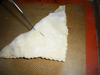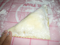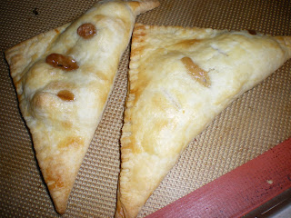 These are delicious and easy to make. I used the Tender Cream Cheese Pastry dough from Ken Haedrich's Pie, and it had recipes for turnovers with various fillings, but not apple. I was craving apple filling. So I winged it, throwing in the usual cinnamon and sugar, with some flour for thickening, and adapting the cutting, shaping, and baking instructions. Luckily, it worked!
