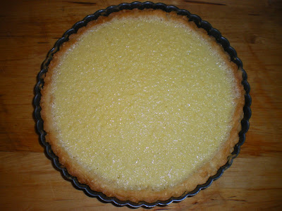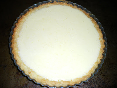 The prebaked crust. It shrunk and puffed up a bit and I was afraid it wouldn't hold much filling, so I pushed down the sides and bottom. Plus, I used my 9-inch tart pan instead of the 11-inch pan called for, so I had quite a bit of leftover filling.