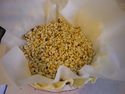 Make the dough. (For the recipe I used, go here. Then roll out, transfer to pan, line with parchment and pie weights, and prebake at 425° for 20 minutes. Remove parchment and pie weights, and bake for another 5 to 10 minutes.) Roll, shape, and transfer it to the pan and prebake it. Let cool.