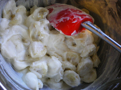 Drain the bananas and dry them on paper towels. Gently fold them into the pastry cream mixture. Scrape the mixture into the prepared pie shell.
