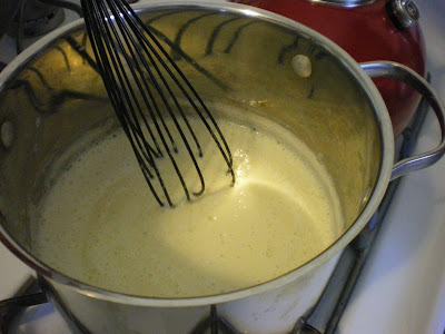 Bring the half-and-half mixture back to a boil over medium heat. Remove the vanilla pod (rinse and dry it for future use). Quickly add all of the egg mixture, whisking rapidly. Continue whisking rapidly for about 20 to 30 seconds, being sure to go into the bottom edge of the pan. The mixture will become very thick. Remove the mixture from the heat and whisk in the butter. (If not using the vanilla bean, whisk in the vanilla extract at this point.) Immediately pour the mixture into a bowl and place a piece of greased plastic wrap directly on top of the cream to prevent a skin from forming. Allow it to cool to room temperature, about 1 hour, then refrigerate until cold.